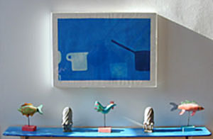 'pots' william scott etching, restoration of original plexiglas box frame over conservation core on composite form work. collection: ballymaloe cookery school.