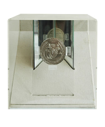 bookshelf mounted display for silver award acylic, composite, mirror. collection: fmp architects.